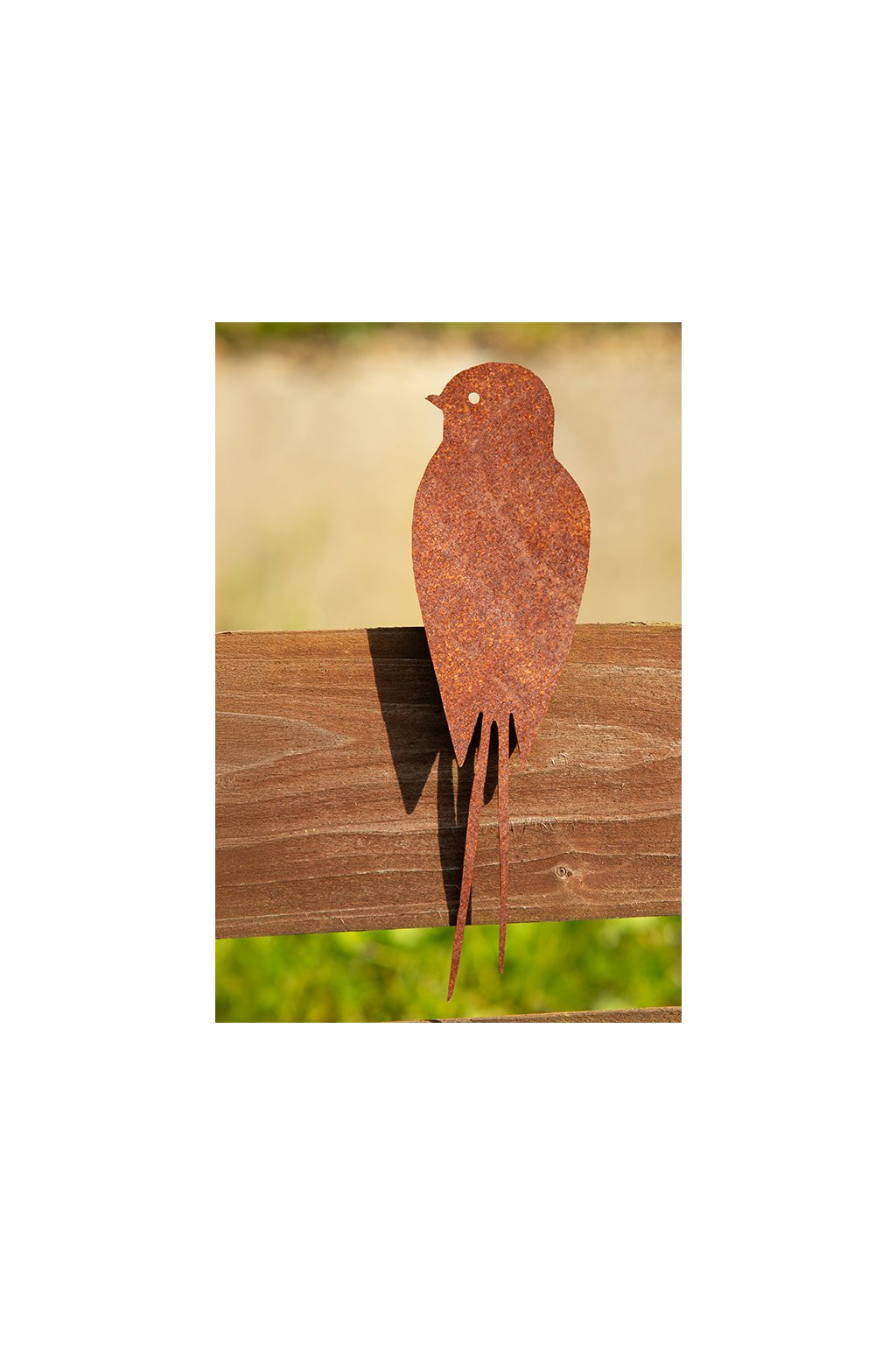 Silueta sedící vlaštovky z cortenu přináší do prostoru klid, jemnost a přírodní harmonii. Je ideálním doplňkem pro každého, kdo chce do své zahrady, na fasádu nebo plot přidat drobný, ale působivý detail – takový, který neupoutá křikem, ale přítomností a atmosférou.